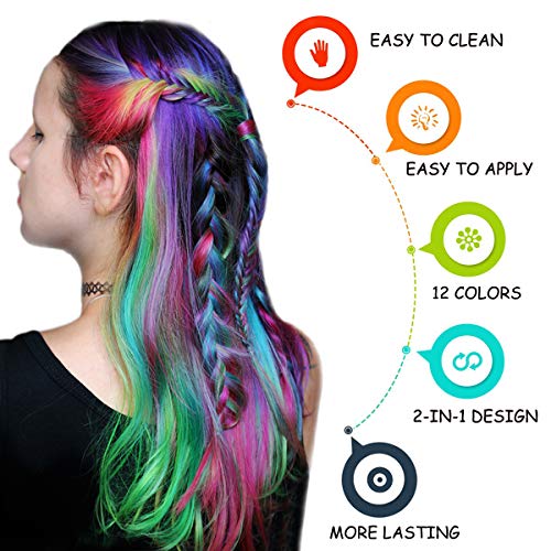 💗【12 NON TOXIC TEMPORARY HAIR COLORS】:This beautiful temporary color for girls of all ages is your girl’s new design accessory. Use hair chalk pens to add temporary hair color for any special occasion or just for fun. Explore endless combinations with 12 different hair color hair chalks to choose from! Whether its purple, pink or even yellow blonde – achieve stunning and gorgeous results instantly! Kalolary temporary hair chalk is the ideal gift for girls aged 3+.